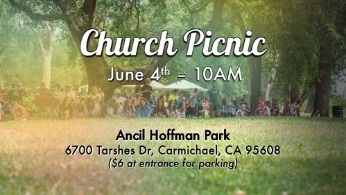 Saturday (10:00 AM) – Church Picnic (Ancil Hoffman Park – 6700 Tarshes Dr, Carmichael, CA 95608)
